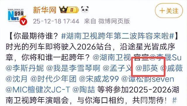 阅读此文之前,麻烦您点击一下“关注”,既方便您进行讨论和分享,又能给您带来不一样的参与感,感谢您的支持。 本文信源来自权威报道:【新华网官方微博、百度百科】等(详细信源附在文章末尾)。为提升文章可读性,细节可能存在润色,请理智阅读,仅供参考! 编辑|星闻爆料局 前言 一整年过去,跨年当晚的晚会算得上是年末的“重头戏”。 毕竟到了年底,谁不想乐呵乐呵。 众多晚会中,最受瞩目的,大概还是央视的跨年晚会。 而在这场狂欢中,嘉宾名单向来是第一焦点。